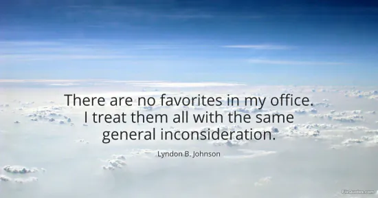 Johnson, Lyndon B. (2026, January 18). There are no favorites in my office. I treat them all with the same general inconsideration. FixQuotes. https://fixquotes.com/quotes/there-are-no-favorites-in-my-office-i-treat-them-8759/