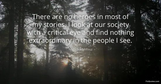 Mahfouz, Naguib. "There are no heroes in most of my stories. I look at our society with a critical eye and find nothing extraordinary in the people I see." FixQuotes. January 16, 2026. https://fixquotes.com/quotes/there-are-no-heroes-in-most-of-my-stories-i-look-97357/.