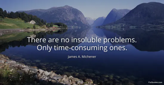 Michener, James A. "There are no insoluble problems. Only time-consuming ones." FixQuotes. January 17, 2026. https://fixquotes.com/quotes/there-are-no-insoluble-problems-only-60360/.