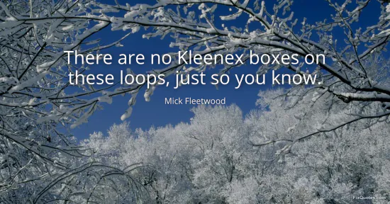 Fleetwood, Mick. (2026, January 15). There are no Kleenex boxes on these loops, just so you know. FixQuotes. https://fixquotes.com/quotes/there-are-no-kleenex-boxes-on-these-loops-just-so-169605/