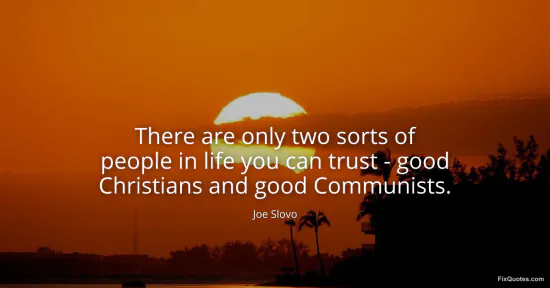 Slovo, Joe. "There are only two sorts of people in life you can trust - good Christians and good Communists." FixQuotes. January 17, 2026. https://fixquotes.com/quotes/there-are-only-two-sorts-of-people-in-life-you-52090/.