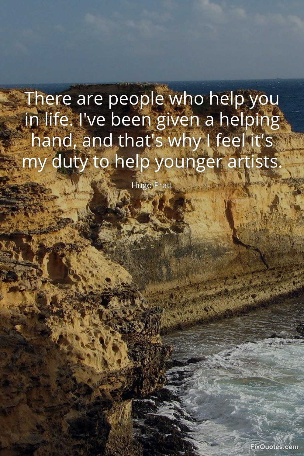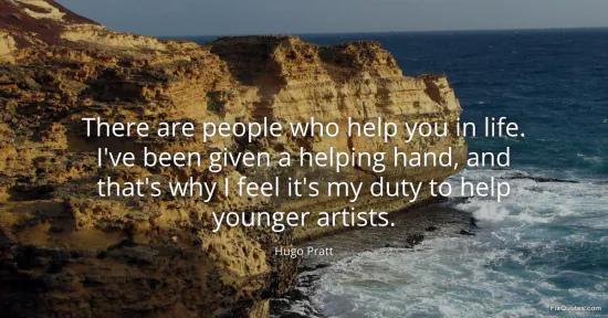 Pratt, Hugo. "There are people who help you in life. I've been given a helping hand, and that's why I feel it's my duty to help younger artists." FixQuotes. January 17, 2026. https://fixquotes.com/quotes/there-are-people-who-help-you-in-life-ive-been-79760/.