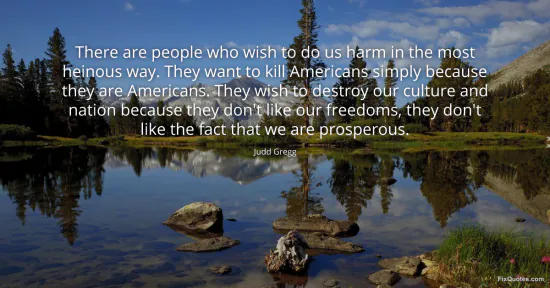 Gregg, Judd. (2026, February 16). There are people who wish to do us harm in the most heinous way. They want to kill Americans simply because they are Americans. They wish to destroy our culture and nation because they don't like our freedoms, they don't like the fact that we are prosperous. FixQuotes. https://fixquotes.com/quotes/there-are-people-who-wish-to-do-us-harm-in-the-119665/