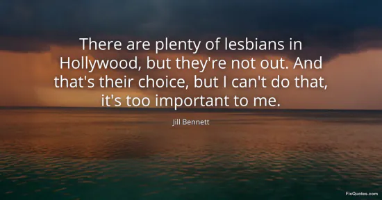 Bennett, Jill. "There are plenty of lesbians in Hollywood, but they're not out. And that's their choice, but I can't do that, it's too important to me." FixQuotes. January 16, 2026. https://fixquotes.com/quotes/there-are-plenty-of-lesbians-in-hollywood-but-122641/.