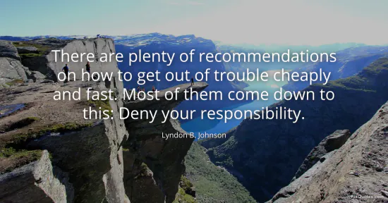 Johnson, Lyndon B. (2026, January 18). There are plenty of recommendations on how to get out of trouble cheaply and fast. Most of them come down to this: Deny your responsibility. FixQuotes. https://fixquotes.com/quotes/there-are-plenty-of-recommendations-on-how-to-get-8761/