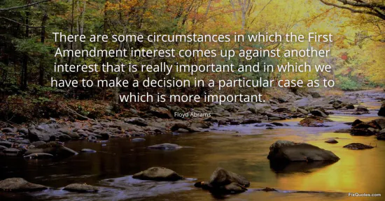 Abrams, Floyd. (2026, January 17). There are some circumstances in which the First Amendment interest comes up against another interest that is really important and in which we have to make a decision in a particular case as to which is more important. FixQuotes. https://fixquotes.com/quotes/there-are-some-circumstances-in-which-the-first-61375/