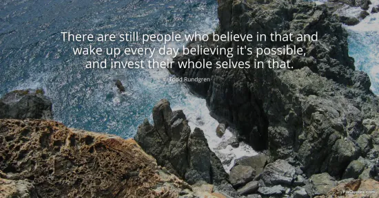 Rundgren, Todd. (2026, January 16). There are still people who believe in that and wake up every day believing it's possible, and invest their whole selves in that. FixQuotes. https://fixquotes.com/quotes/there-are-still-people-who-believe-in-that-and-116325/