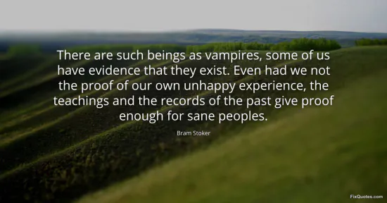 Stoker, Bram. (2026, January 17). There are such beings as vampires, some of us have evidence that they exist. Even had we not the proof of our own unhappy experience, the teachings and the records of the past give proof enough for sane peoples. FixQuotes. https://fixquotes.com/quotes/there-are-such-beings-as-vampires-some-of-us-have-39282/
