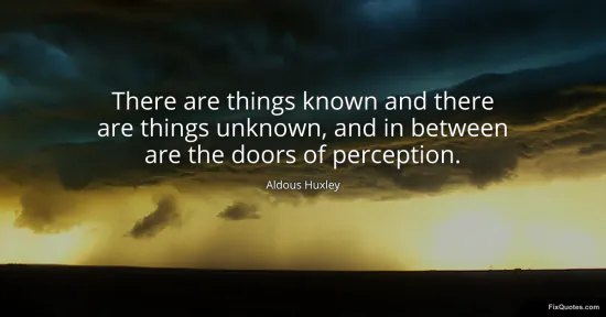Huxley, Aldous. (2026, January 14). There are things known and there are things unknown, and in between are the doors of perception. FixQuotes. https://fixquotes.com/quotes/there-are-things-known-and-there-are-things-3132/