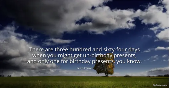 Carroll, Lewis. "There are three hundred and sixty-four days when you might get un-birthday presents, and only one for birthday presents, you know." FixQuotes. January 18, 2026. https://fixquotes.com/quotes/there-are-three-hundred-and-sixty-four-days-when-8349/.