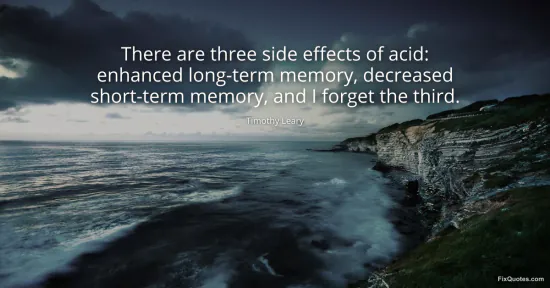 Leary, Timothy. (2026, January 15). There are three side effects of acid: enhanced long-term memory, decreased short-term memory, and I forget the third. FixQuotes. https://fixquotes.com/quotes/there-are-three-side-effects-of-acid-enhanced-5185/