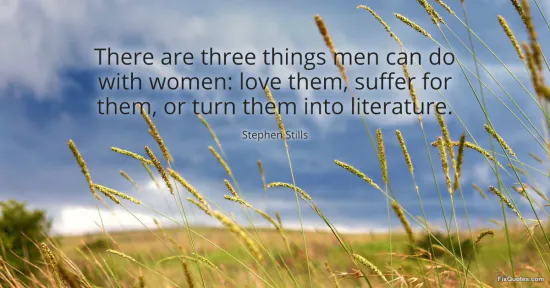 Stills, Stephen. "There are three things men can do with women: love them, suffer for them, or turn them into literature." FixQuotes. January 15, 2026. https://fixquotes.com/quotes/there-are-three-things-men-can-do-with-women-love-136370/.