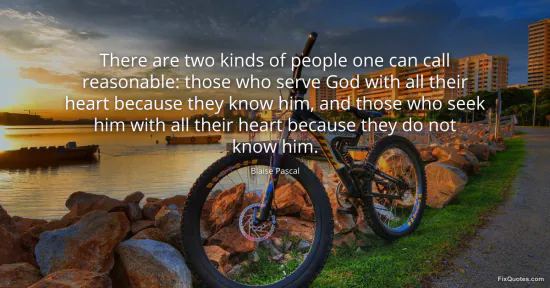 Pascal, Blaise. (2026, January 18). There are two kinds of people one can call reasonable: those who serve God with all their heart because they know him, and those who seek him with all their heart because they do not know him. FixQuotes. https://fixquotes.com/quotes/there-are-two-kinds-of-people-one-can-call-5089/