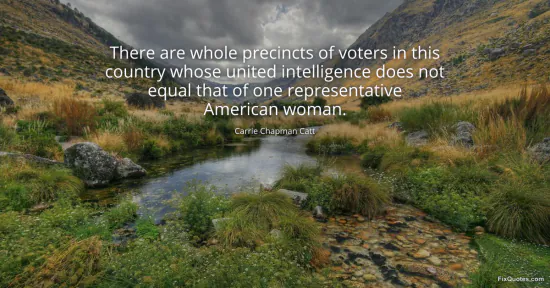 Catt, Carrie Chapman. (2026, January 16). There are whole precincts of voters in this country whose united intelligence does not equal that of one representative American woman. FixQuotes. https://fixquotes.com/quotes/there-are-whole-precincts-of-voters-in-this-101542/