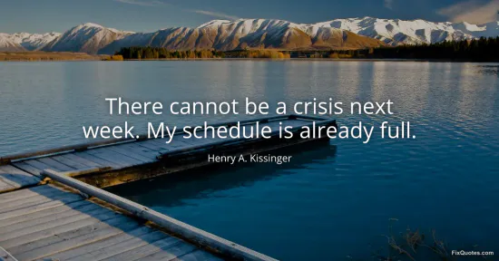 Kissinger’s line lands because it treats catastrophe like a calendar conflict, a bit of black comedy from someone who spent decades inside rooms where “next week” could mean war, coups, oil shocks, hostages. The joke is managerial: history is framed as an inbox problem, a reminder that in the national security state, even apocalypse arrives through scheduling.