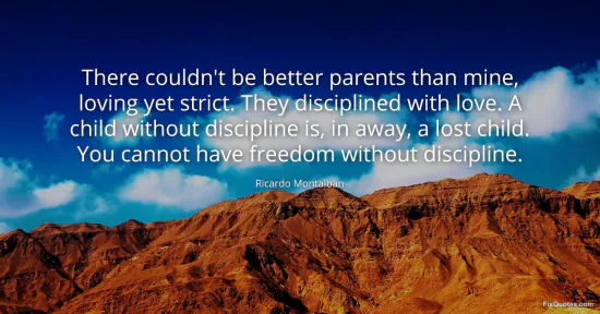 Montalban, Ricardo. (2026, January 17). There couldn't be better parents than mine, loving yet strict. They disciplined with love. A child without discipline is, in away, a lost child. You cannot have freedom without discipline. FixQuotes. https://fixquotes.com/quotes/there-couldnt-be-better-parents-than-mine-loving-65103/