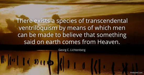 Lichtenberg, Georg C. (2026, January 15). There exists a species of transcendental ventriloquism by means of which men can be made to believe that something said on earth comes from Heaven. FixQuotes. https://fixquotes.com/quotes/there-exists-a-species-of-transcendental-36202/