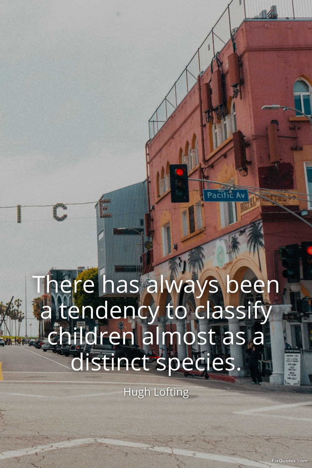 Lofting, Hugh. "There has always been a tendency to classify children almost as a distinct species." FixQuotes. January 17, 2026. https://fixquotes.com/quotes/there-has-always-been-a-tendency-to-classify-54796/.