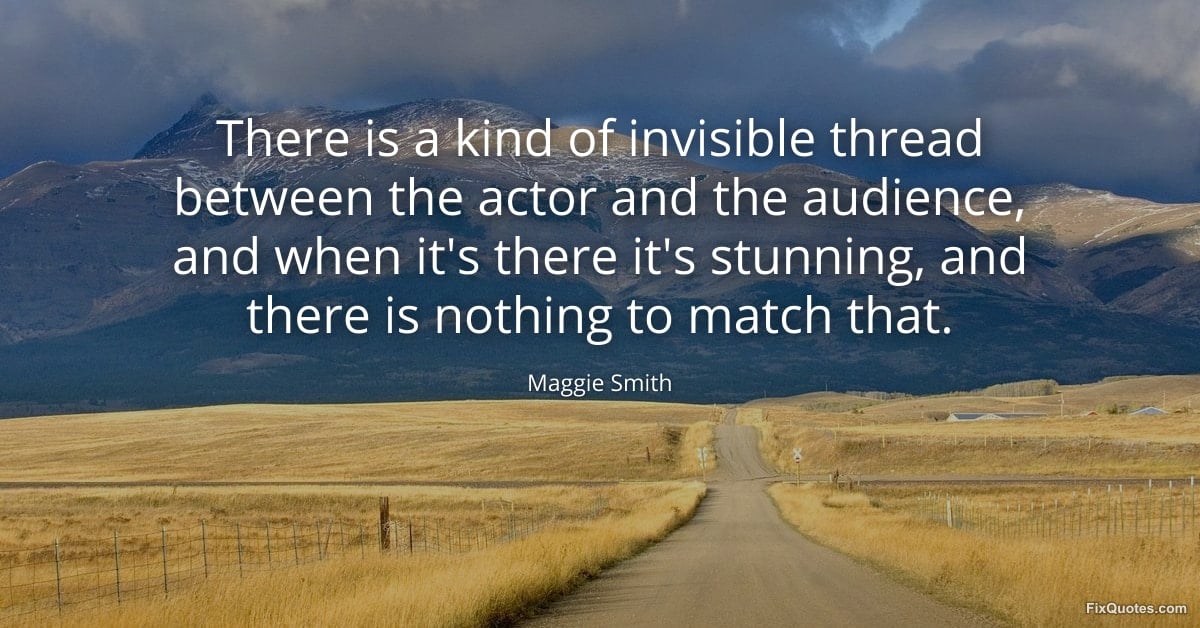 Smith, Maggie. (2026, January 16). There is a kind of invisible thread between the actor and the audience, and when it's there it's stunning, and there is nothing to match that. FixQuotes. https://fixquotes.com/quotes/there-is-a-kind-of-invisible-thread-between-the-102542/