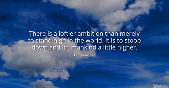 "There is a loftier ambition than merely to stand high in the world. It is to stoop down and lift mankind a little higher"