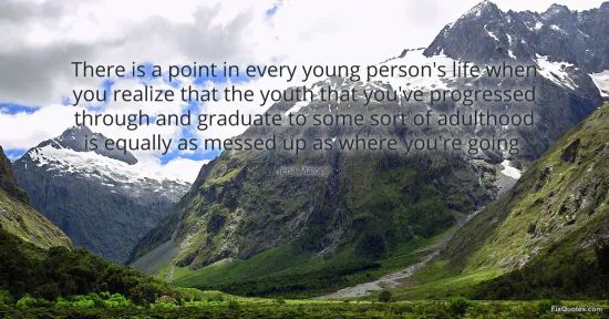 "There is a point in every young person's life when you realize that the youth that you've progressed through and graduate to some sort of adulthood is equally as messed up as where you're going." FixQuotes, 16 Jan. 2026, https://fixquotes.com/quotes/there-is-a-point-in-every-young-persons-life-when-90613/. Accessed 12 Feb. 2026.