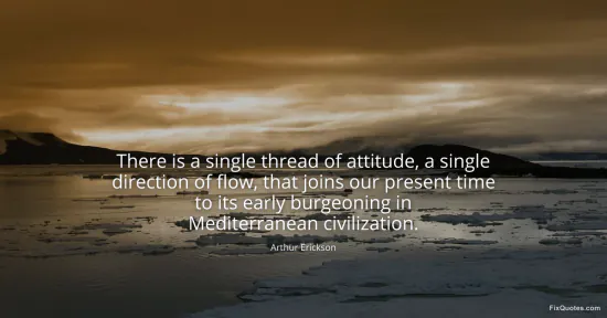 Erickson, Arthur. "There is a single thread of attitude, a single direction of flow, that joins our present time to its early burgeoning in Mediterranean civilization." FixQuotes. January 15, 2026. https://fixquotes.com/quotes/there-is-a-single-thread-of-attitude-a-single-117549/.