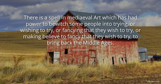 Smith, Goldwin. "There is a spell in mediaeval Art which has had power to bewitch some people into trying, or wishing to try, or fancying that they wish to try, or making believe to fancy that they wish to try, to bring back the Middle Ages." FixQuotes. February 18, 2026. https://fixquotes.com/quotes/there-is-a-spell-in-mediaeval-art-which-has-had-74510/.