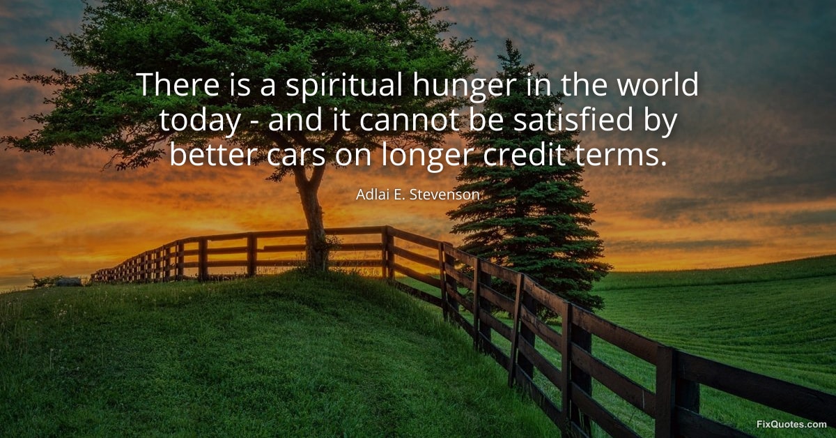 Stevenson, Adlai E. (2026, January 17). There is a spiritual hunger in the world today - and it cannot be satisfied by better cars on longer credit terms. FixQuotes. https://fixquotes.com/quotes/there-is-a-spiritual-hunger-in-the-world-today-41721/