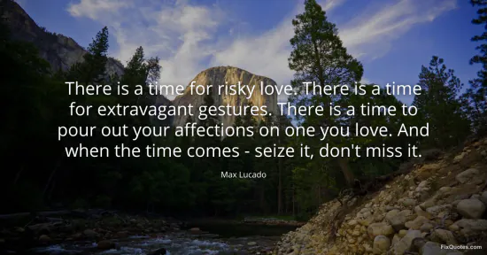 Lucado, Max. "There is a time for risky love. There is a time for extravagant gestures. There is a time to pour out your affections on one you love. And when the time comes - seize it, don't miss it." FixQuotes. January 15, 2026. https://fixquotes.com/quotes/there-is-a-time-for-risky-love-there-is-a-time-156787/.