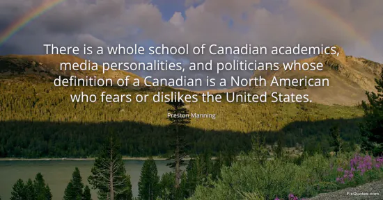 Manning, Preston. "There is a whole school of Canadian academics, media personalities, and politicians whose definition of a Canadian is a North American who fears or dislikes the United States." FixQuotes. January 15, 2026. https://fixquotes.com/quotes/there-is-a-whole-school-of-canadian-academics-147863/.