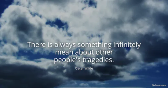 Wilde, Oscar. (2026, January 15). There is always something infinitely mean about other people's tragedies. FixQuotes. https://fixquotes.com/quotes/there-is-always-something-infinitely-mean-about-26965/