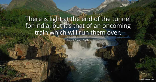 Sidhu, Navjot Singh. "There is light at the end of the tunnel for India, but it's that of an oncoming train which will run them over." FixQuotes. January 15, 2026. https://fixquotes.com/quotes/there-is-light-at-the-end-of-the-tunnel-for-india-156887/.