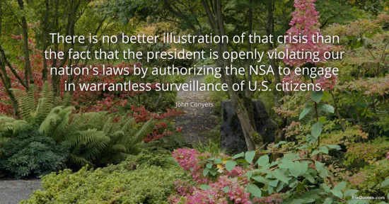 Conyers, John. (2026, January 16). There is no better illustration of that crisis than the fact that the president is openly violating our nation's laws by authorizing the NSA to engage in warrantless surveillance of U.S. citizens. FixQuotes. https://fixquotes.com/quotes/there-is-no-better-illustration-of-that-crisis-98351/