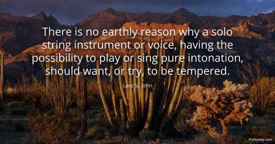 John, Lara St. "There is no earthly reason why a solo string instrument or voice, having the possibility to play or sing pure intonation, should want, or try, to be tempered." FixQuotes. January 17, 2026. https://fixquotes.com/quotes/there-is-no-earthly-reason-why-a-solo-string-63413/.