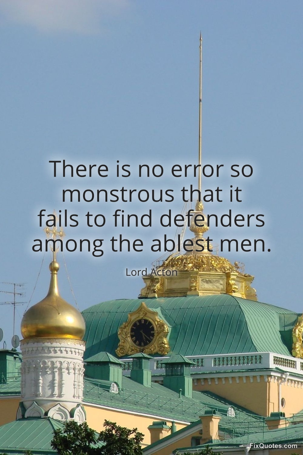 Acton, Lord. "There is no error so monstrous that it fails to find defenders among the ablest men." FixQuotes. January 18, 2026. https://fixquotes.com/quotes/there-is-no-error-so-monstrous-that-it-fails-to-11832/.