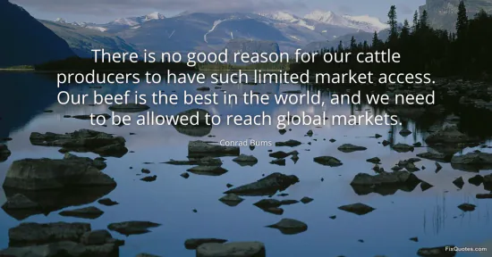 Bums, Conrad. (2026, January 16). There is no good reason for our cattle producers to have such limited market access. Our beef is the best in the world, and we need to be allowed to reach global markets. FixQuotes. https://fixquotes.com/quotes/there-is-no-good-reason-for-our-cattle-producers-124329/