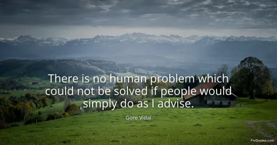 Vidal, Gore. (2026, January 16). There is no human problem which could not be solved if people would simply do as I advise. FixQuotes. https://fixquotes.com/quotes/there-is-no-human-problem-which-could-not-be-82445/
