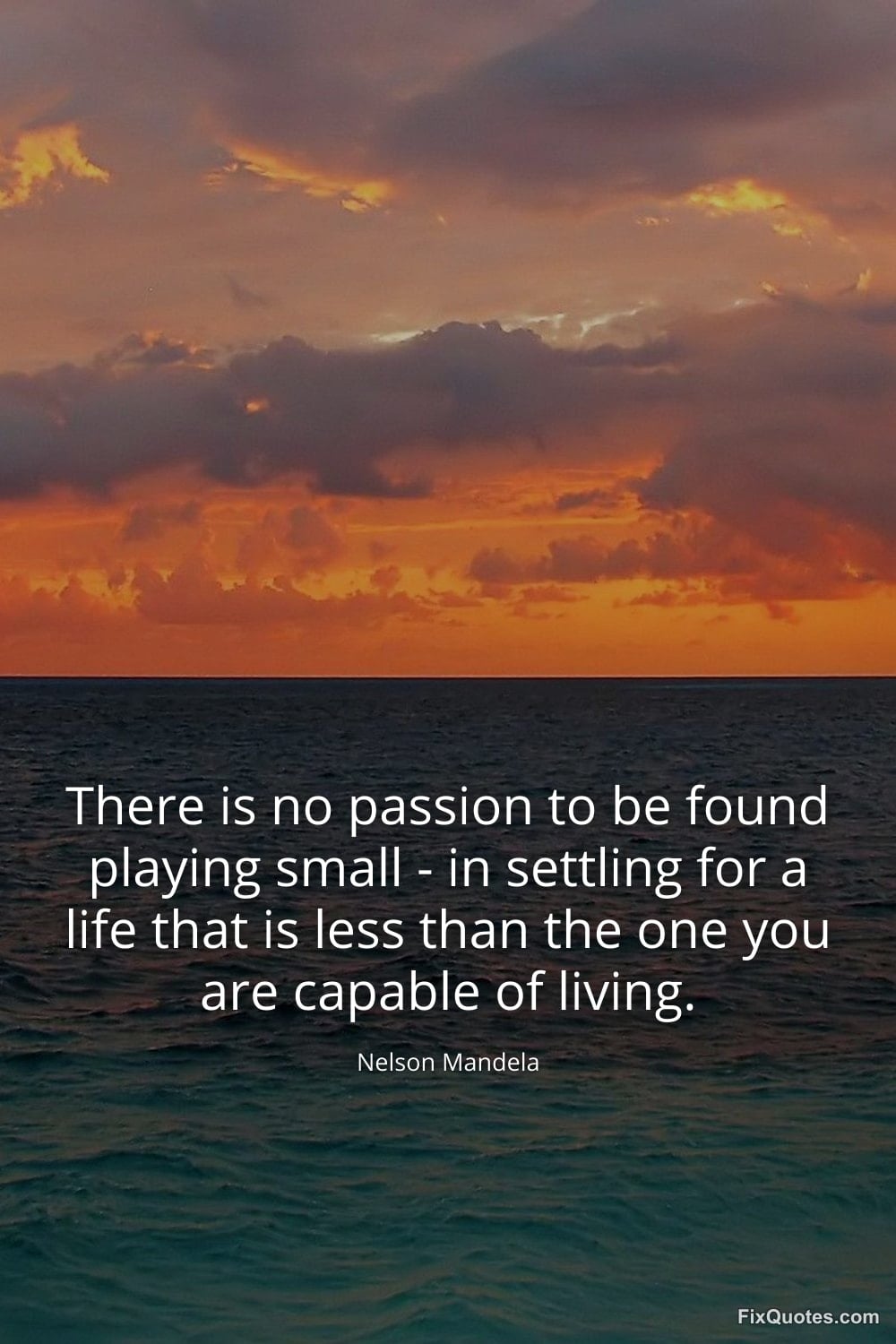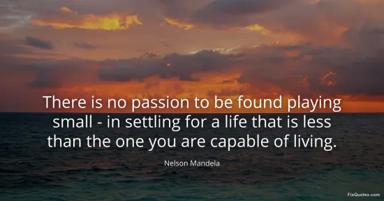 Mandela, Nelson. (2026, January 18). There is no passion to be found playing small - in settling for a life that is less than the one you are capable of living. FixQuotes. https://fixquotes.com/quotes/there-is-no-passion-to-be-found-playing-small-9239/