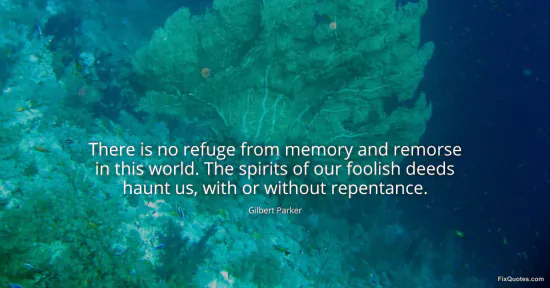 Parker, Gilbert. (2026, January 17). There is no refuge from memory and remorse in this world. The spirits of our foolish deeds haunt us, with or without repentance. FixQuotes. https://fixquotes.com/quotes/there-is-no-refuge-from-memory-and-remorse-in-48518/
