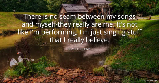 Friedman, David. "There is no seam between my songs and myself-they really are me. It's not like I'm performing; I'm just singing stuff that I really believe." FixQuotes. January 15, 2026. https://fixquotes.com/quotes/there-is-no-seam-between-my-songs-and-myself-they-43285/.