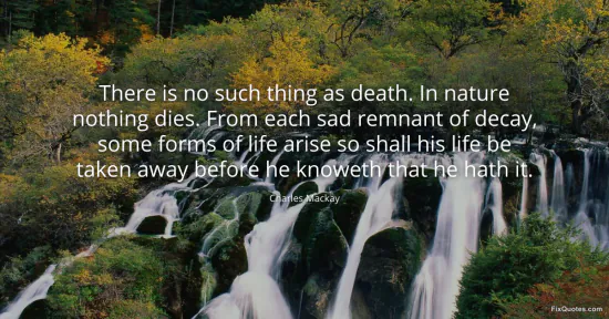 Mackay, Charles. "There is no such thing as death. In nature nothing dies. From each sad remnant of decay, some forms of life arise so shall his life be taken away before he knoweth that he hath it." FixQuotes. January 15, 2026. https://fixquotes.com/quotes/there-is-no-such-thing-as-death-in-nature-nothing-139946/.