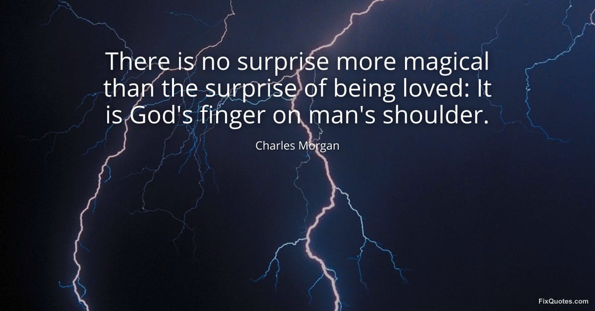 Morgan, Charles. (2026, January 16). There is no surprise more magical than the surprise of being loved: It is God's finger on man's shoulder. FixQuotes. https://fixquotes.com/quotes/there-is-no-surprise-more-magical-than-the-137325/