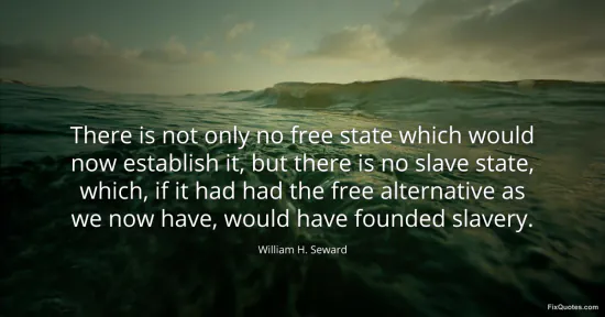 Seward, William H. "There is not only no free state which would now establish it, but there is no slave state, which, if it had had the free alternative as we now have, would have founded slavery." FixQuotes. January 18, 2026. https://fixquotes.com/quotes/there-is-not-only-no-free-state-which-would-now-5889/.