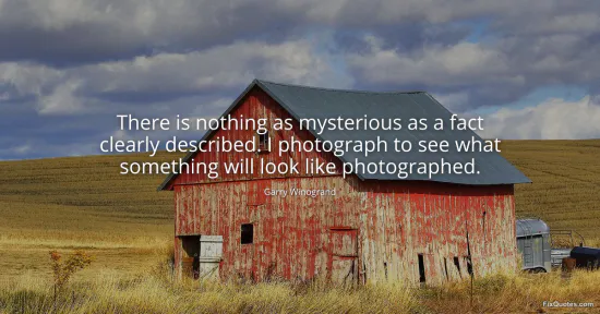 "There is nothing as mysterious as a fact clearly described. I photograph to see what something will look like photographed"