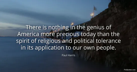 Harris, Paul. "There is nothing in the genius of America more precious today than the spirit of religious and political tolerance in its application to our own people." FixQuotes. January 16, 2026. https://fixquotes.com/quotes/there-is-nothing-in-the-genius-of-america-more-85381/.