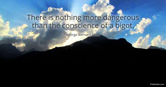 Shaw, George Bernard. (2026, January 15). There is nothing more dangerous than the conscience of a bigot. FixQuotes. https://fixquotes.com/quotes/there-is-nothing-more-dangerous-than-the-29186/