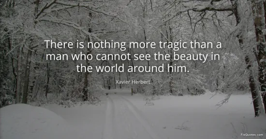 Herbert, Xavier. (2026, January 15). There is nothing more tragic than a man who cannot see the beauty in the world around him. FixQuotes. https://fixquotes.com/quotes/there-is-nothing-more-tragic-than-a-man-who-171564/