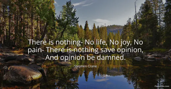 Crane, Stephen. "There is nothing- No life, No joy, No pain- There is nothing save opinion, And opinion be damned." FixQuotes. January 15, 2026. https://fixquotes.com/quotes/there-is-nothing-no-life-no-joy-no-pain-there-173384/.