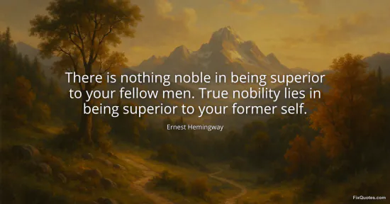 The subtext is a rebuke to status as character. Social superiority depends on someone else losing, and that’s why Hemingway calls it “nothing noble”: it’s hierarchy dressed up as virtue. By contrast, “former self” suggests a fight with weakness, fear, complacency, or self-deception - the enemies that populate his fiction more than any villain does. It’s also a way of preserving pride without requiring domination. You can be hard on yourself without turning that hardness into cruelty toward others.