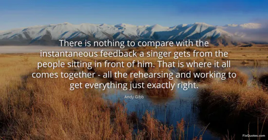 Instantaneous feedback is the drug and the discipline in Andy Gibb's line: the thing that makes pop feel alive and also keeps it honest. He’s talking about a basic truth of performance that studio perfection can’t replicate: the audience isn’t a consumer so much as a live instrument. Their attention, restlessness, laughter, or sudden hush tells you in real time whether the song is landing, whether the persona is working, whether the night is slipping away.